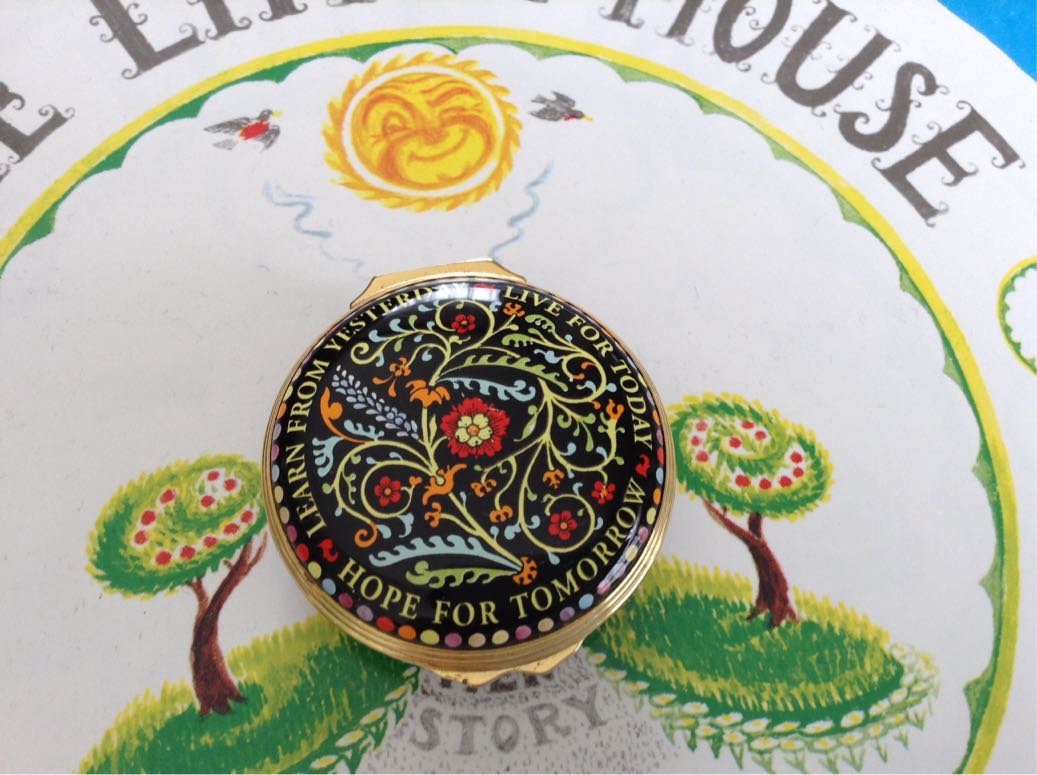 If you are interested in English Antiques Shopping, check out tonight from 8:00pm on BS11. This Halcyon Days is a gift from my benefactor about 10 years ago as a souvenir from London. I didn't know this little box is called Halcyon Days before I've narrated this program. When I came home from the studio, I just looked the back of the pill box. There was a mark of royal warrant and Halcyon Days letters were printed. I also love these words printed on the box, Albert Einstein quotes "Learn from yesterday, Live for today, Hope for tomorrow".