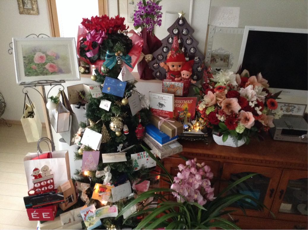 毎週伺っている美容院のオーナー慎吾さんからはシクラメンの鉢など心のこもった沢山のプレゼントを。ラジオ番組をご一緒していた代理店の方々、制作会社の方々からも沢山の愛を頂きました。中でも番組を卒業した後も変わらず蘭の鉢を送って下さる平本さん。大好きなフルーツを送って下さった佳代さん、悠子さん。エフエムサウンズの優くん、貴文くん、拓麻くん、ジーンときました。天使のような笑顔でいつも癒してくれるDlifeの絵里加さん、心に残るひとときをありがとう。Dlifeの文高さん、ミキサーの克己さん、Baca the Baccaの智美さん。そして、ディズニーのお仕事を陰となり日向となり支えてくれるマネージャーの紀子さん、デスクの真紀ちゃん、ディズニーのスケジュールを毎回伝えてくれる脩子さん、旅チャンネルスケジュール担当のデスク、ゆかりさん、お心のこもった沢山の贈り物をありがとう。ミスターサンデーの局プロデューサー潤さん、MCの慶子さん、ディレクターの薫さん、デスクの有香里さん、忙しい中素敵なプレゼントをありがとうございます。10月に番組を卒業したディレクターの恵歩さんからもカードを頂き、嬉しかったです。そして母代わりの佐和子叔母、いつも見守っくれてありがとう。その他沢山の方々からお心遣いを頂き、年の終わりに感謝の思いでいっぱいです。