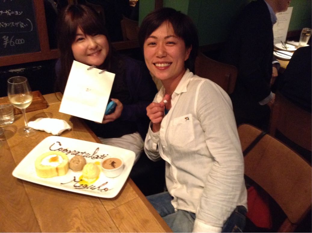 This is a shot taken at "Kitchen Nakamura", celebrating 恵歩 Meguho's promotion as a TV director. In Japanese,"恵"means "Blessing" and "歩" means "Walking". So when I first asked her name in 2013, I thought "What a lovely name, it's like Jesus Christ!"But actually, she really worked hard as an assistant director, and wherever she goes,she relieves and soften the atmosphere with her cute puppy eyes. She succeeded in her bid to become as a director of "Mr Sunday".