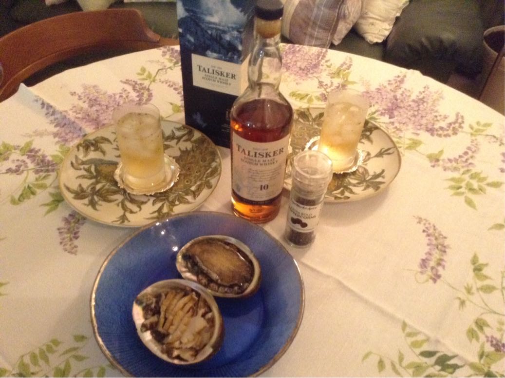 Awaji Island is the largest of the Seto Inland Sea islands. Abalone are abundant in summer. My friend tried to send me this abalone in August, but we weren't home at that time. Finally, really enjoyed "Awajishima abalone"with "Talisker"and soda.Thank you, Yua!