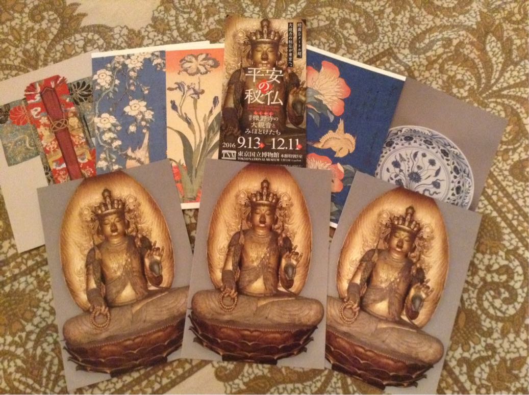 テレビ朝日の「東京サイト」を観ていたら、秘仏の大観音を見上げるきく姫さんの驚愕の表情!それもこんなに近くで観られるならと、初めて東京国立博物館へ足を運びました。艶やかな存在感に圧倒されました。ゆっくり秘仏の周りを15分程かけて周り、その金色のオーラに癒されました。帰ろうとしたら、1000円で購入したチケットで常設展示など膨大に観られるエリアがあり、まずは二階に。購入した絵葉書の作品含め、素晴らしい作品ばかり。重要文化財だらけで1日かけても観きれない程!閉館2時間前到着は厳しかったです。
