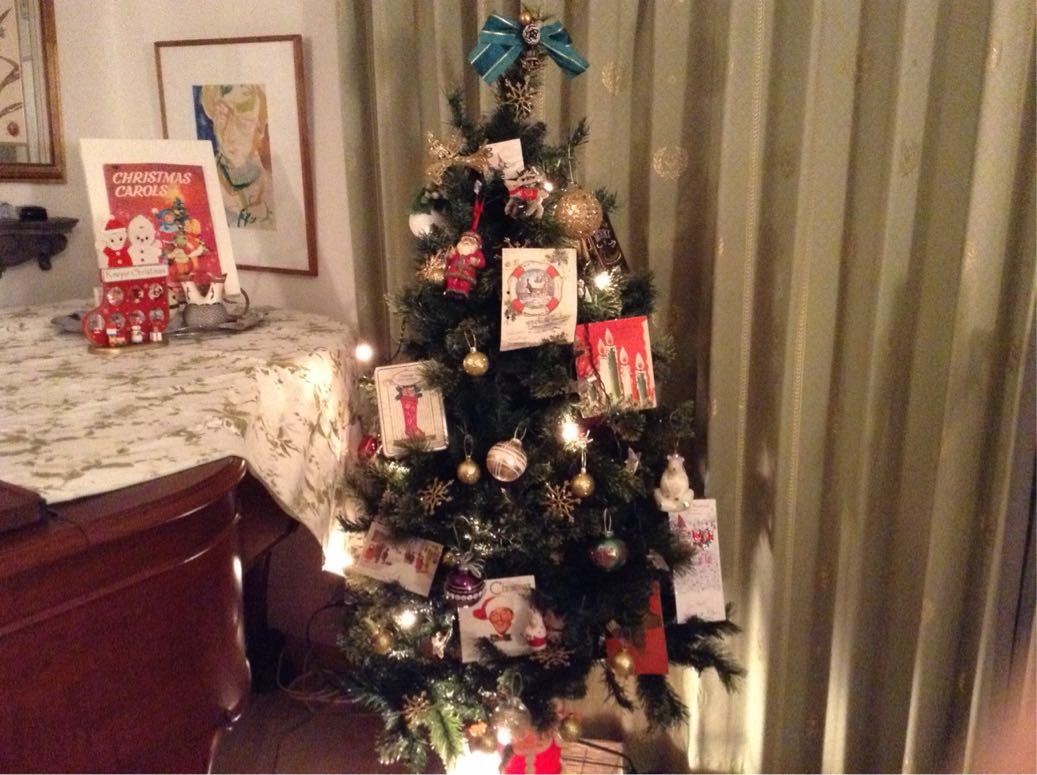 My favorite season of the year has arrived! The cards on the tree are my precious treasure from the past. A red card the candles are written is the one from my dad sent for my mom before I was born. Two small cards which santa clauses written are from my dear friend living in New York, Claire Bright. She is playing violin on this YouTube.
