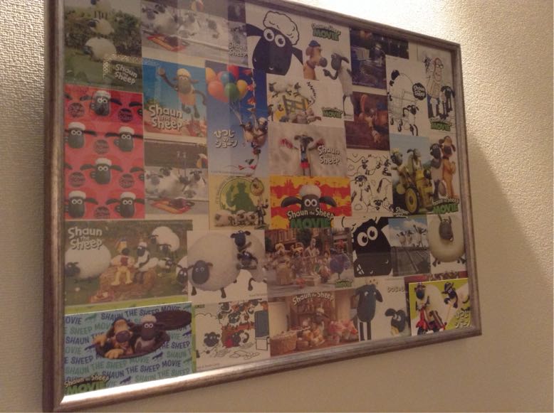 These are name cards given from a studio "Omnibus Japan". This Shaun character really cheered me up this year. So I placed them in the picture frame by a stair wall. Thank you Shaun for giving us happiness and a lot of Smiling!