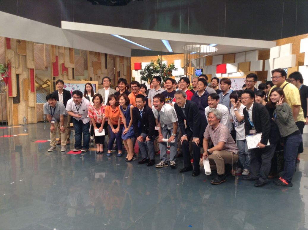 六月一杯で番組を卒業される郡薫子ディレクターと三浦淳信ディレクターを囲んでオンエア後、スタジオに集まった一コマ。みんな笑顔ですね!! このエネルギーが番組に反映されている気がします。