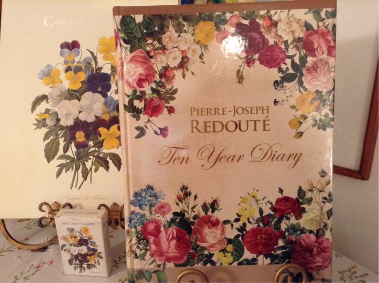 I was looking for a flower print diary for about a year. And here I found my favorite Belgian painter, Pierre-Joseph Redoute's flower dairy. The book behind the diary is "Choix des plus belles fleurs"by Roudoute.Especially, a front cover picture"Bouquet de Pensees "is my all time favorite flower picture.