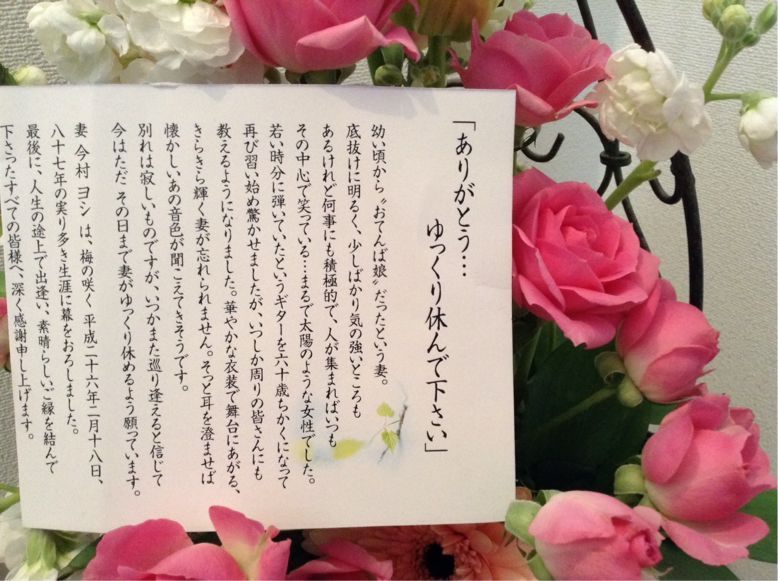 遠縁のおばさまが亡くなり、会葬御礼が届きました。以前一度だけ親戚が集まる席でお会いし、とても朗らかな方だった想い出があります。遠方の為、式には出席出来ませんでした。そんな中届いた志の品と共に、このメッセージがふと目に止まり、熱い想いが込み上げました。おばさまは、愛されてこの世を去られたのだな…と。