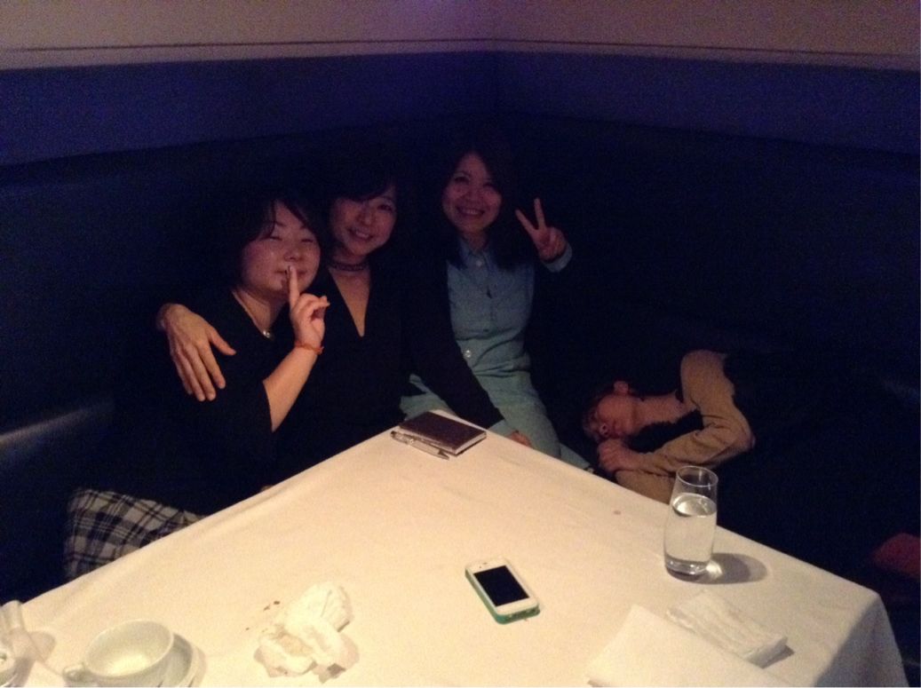 少しライトが暗めですが、代官山のレストラン「カノビアーノ」で誕生日を祝ってくれた3人の妹達!2006年にお昼のワイド番組で出会い、半年で番組は終わりましたが、それから7年、プライベートで行き来する仲に。縁とは不思議なものですね。1番右でゴロンしている直子ちゃんは、昨日から徹夜の生放送終わりで、駆け付けてくれました。でも、みんなの気持ちが何より嬉しくて!思い出に残るひと時をありがとう。。