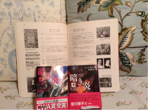 イギリスのミステリーはクリスティーの作品を始めよく読んでいますが、16世紀のイギリスが舞台の作品は今回が初めて!惹き込まれました。チューダー王朝の弁護士シャードレイクが主役のミステリー。この頃日本では戦国時代、音楽の世界では改革派(カルバン派)教会の為の「祈りと宗教歌の形式」が出版。ヨーロッパでは、ジュネーブに戻ったカルバンが宗教改革に着手した、そんな時代でした。「暗き炎」の中でも、人々が車の代わりに馬に乗り、テレビや新聞の代わりに木版画が刷られた新報が街で配られます。ヘンリー八世の周りに実在した人物も、物語に登場。架空の人物と実在した人物がクロスしながらの展開も、読みどころの一つ。原書は2004年の作品です。