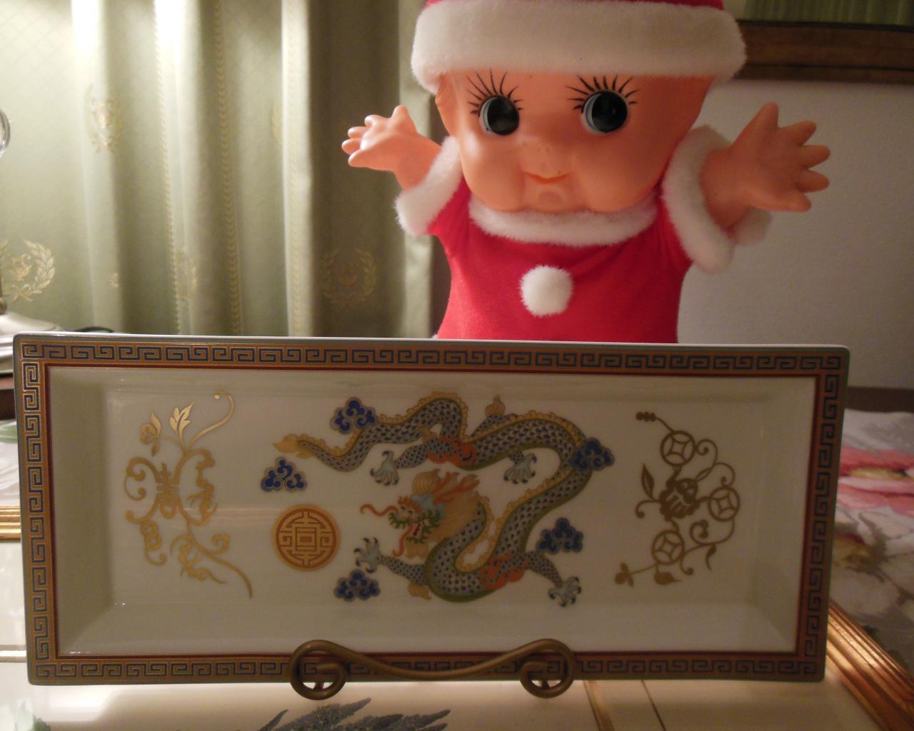 My lucky charm,dragon! I found this plate at Seibu Shibuya A-Building 7F where I often visit.Behind the plate you can see a sweet kewpie doll,it's also my lucky charm.She dresses like santa only this season of the year.Isn't she charming!?