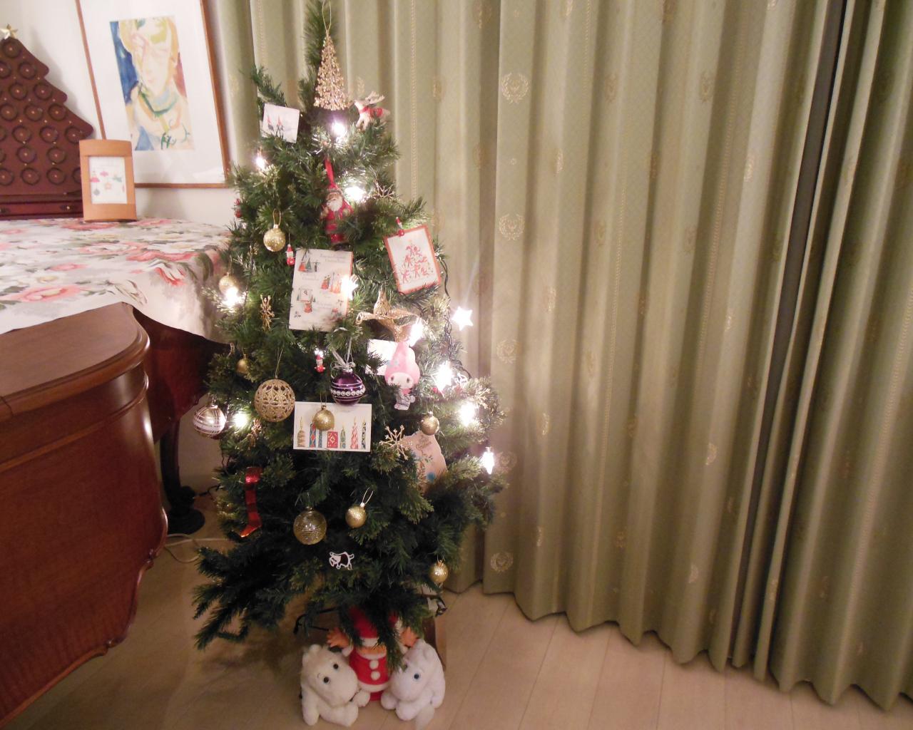 我が家のクリスマスツリーです。去年辺りからゴールドのオーナメントを揃え始め、その殆どは1924年創業のフィンランドWeiste製の物。代官山のクリスマスカンパニーなど色々お店を覗きましたが、フィンランドとドイツのオーナメントが特に素敵です。根元を支えているのは、ピーコックの景品でもらったムーミンとノンノン、そしてサンタさんコスチュームのキューピーちゃんです!