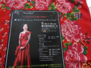 現在81歳を迎える母ですが、東京芸術大学声楽家を卒業後スペインに渡ったのが1961年。以来50年近くスペインの歌を唄い続け、1997年にはスペイン国王陛下より『文民功労勲章』も受賞しています。毎年12月に開催するクリスマスコンサートでは、カザルスの『鳥の歌』に世界平和の祈りを込め、その他クリスマスの名曲、ハバネラ、ラパロマ等を織り交ぜながらお届けしていて、今年で27回目を迎えます。大きなホールで開催されるコンサートは今回で最後になるとのことで、母も毎日練習に励んでいます。師走の忙しい時期ですが、もしお時間あれば是非いらしてくださいね!