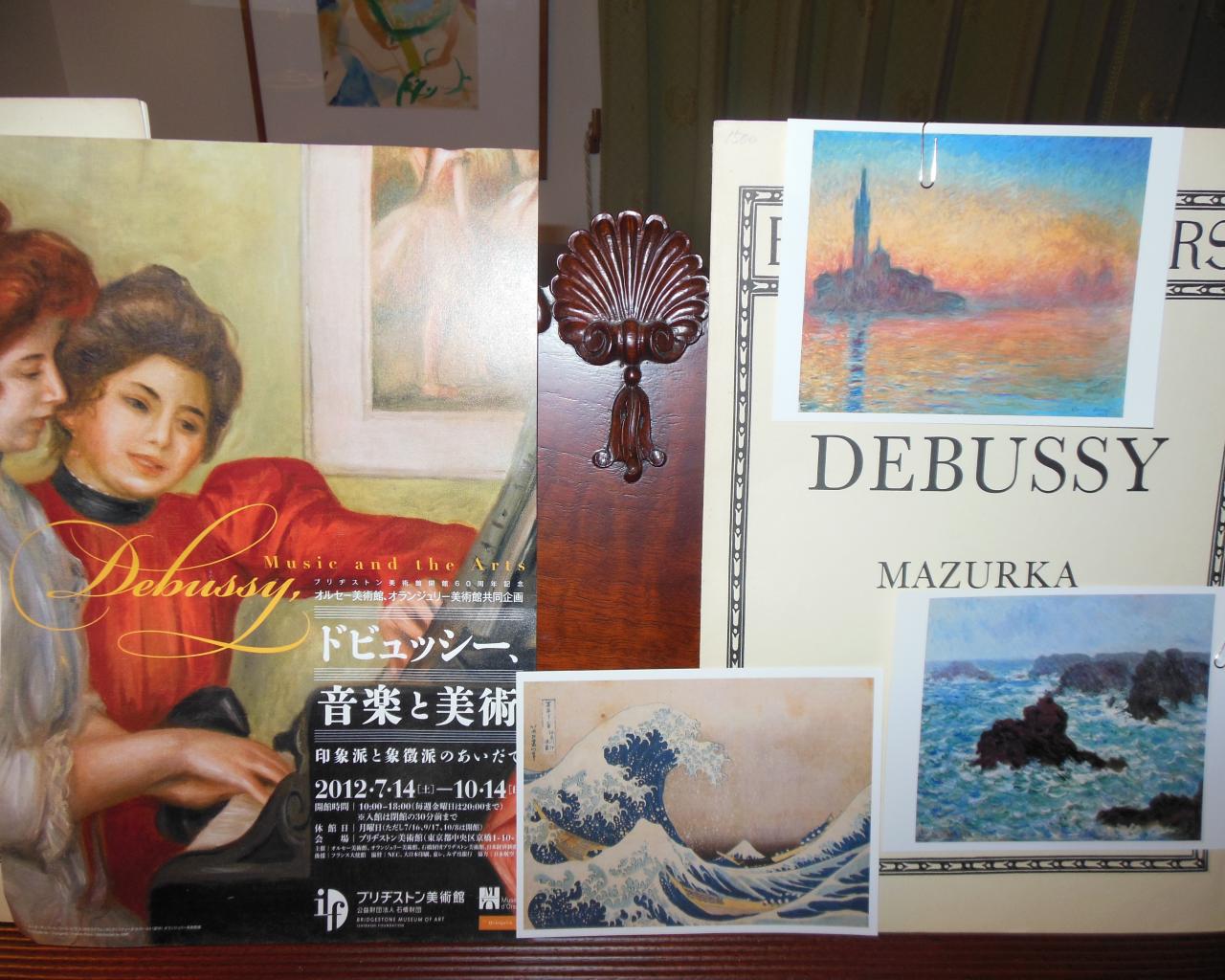 ブリジストン美術館で開催中の『ドビュッシー、音楽と芸術〜印象派と象徴派のあいだで』を観に行ってきました。ドビュッシーの音楽は特に好きで毎日1曲は弾いています。エキゾチックなメロディーラインとリズム、浮遊感のある響きが好きだったのですが、この美術展で、何故彼の音楽に惹かれたのか。。その魅力の原点に触れられた気がしました。彼の生活そのものが、彼の音楽のように絵画的で、素敵なセンスに溢れていたのですね。愛する北斎やモネの絵画に囲まれて暮らし、ルノワールやニジンスキー等と食事を楽しみ、人生を謳歌したドビュッシー。中でも彼が最後迄部屋に飾り、手放さなかったというカミーユクローデルの『ワルツ』には心打たれました。
