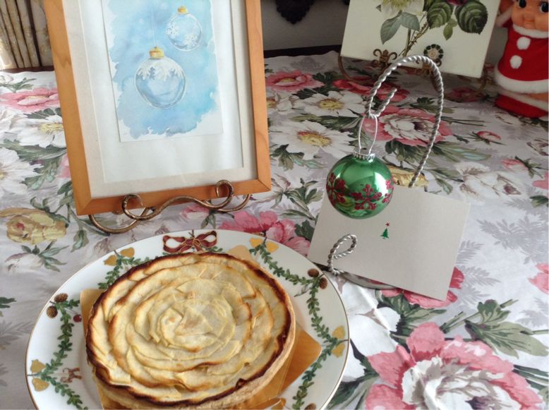 今年も大好きなタルトが到着しました。小田急線生田駅からすぐのパン屋さん「ラ・マンキ・パンス」特製タルト。毎日一個はリンゴを食べていますが、リンゴのパイも大好きで、パン屋さんでは必ず選ぶ一品。今回もグラニュー糖が苦手な私のために、ブラウンシュガーを使って作って下さったとのこと。ありがとうございます!(後ろに飾っているのは、妹・彩子が数年前の誕生日に贈ってくれた彩子直筆の水彩画です。)