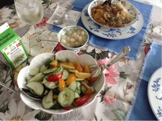 先日頂いた香川県の夏野菜で作ったカレーとサラダ。スパークリングワインの代わりにデンマークのエルダーフラワーシロップを入れた炭酸水を合わせて頂きました!こちらは青山アンデルセンのデンマークフェアで見つけたエルダーフラワー、レモン果汁、キクイモで作られたシロップ。みどりの風を感じる優しい味でした。